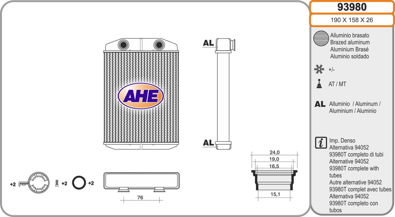 Risc. FIAT/LANCIA 500/500C/Panda/Ypsilon Imp. Denso 10.07-